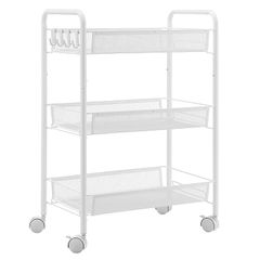 VECELO キッチンワゴン サイズ違い底部メッシュ3段ワゴン スチール製 キャスター付き 幅45×奥行37×高さ85cm 約2.45kg ホワイト キッチンや脱衣所で収納力を活かしてすっきり整理 1