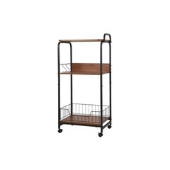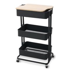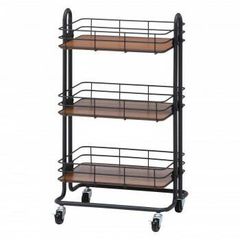 【取り出しやすくリニューアル! 】アイリスプラザ キッチンワゴン 調味料ラック バスケットラック 木天板タイプ 収納ワゴン 3段 キャスター付 幅44.5×奥行35×高さ78cm ブラック KW-L002 1