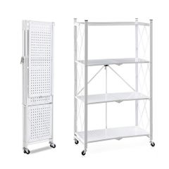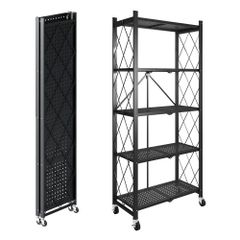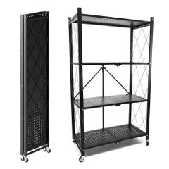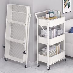 キッチンワゴン 組立不要 3段 折り畳み式 スチールラック 幅46×奥行29.5×高さ87cm バスケットトローリー バスケットラック ハンドル キッチンラック キャスター付き 3段 棚 隙間収納 収納ワゴン 収納カート 収納ラック 移動式 1