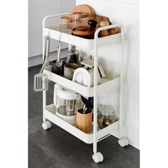 山善(YAMAZEN) キッチンワゴン キャスター付き 3段 幅43.5×奥行26×高さ74.5cm ワゴン 隙間収納 組立かんたん マットホワイト LBW-3(MWH) 1