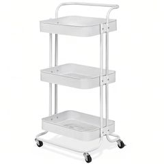PRTONE キッチンラック キッチンワゴン キャスター付き 天板付き 幅43×奥行30×高さ87.3cm ベッドサイドテーブル メタルラック 3段 エスカン付き キッチン 収納 棚 スリム 取っ手付き ナイトテーブル ソファーテーブル スチールラック 収 1