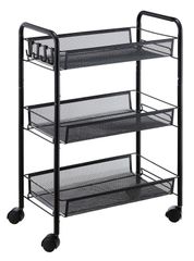 【数量限定】メッシュ メタル キッチン カート キッチンワゴン 防錆 小物収納 メタルラック サイドワゴン 3段 EKNITEY 幅26.5×奥行45.5×高さ63.5cm ブラック