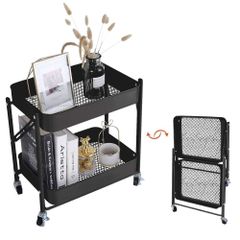 【在庫処分】ベビーワゴン ミニ スリム サイドテーブル 収納わごん ブラック テーブル下収納ワゴン 隙間収納 折畳可能 折りたたみ式 取り付け簡単 2段 キャスター付き ワゴン キッチン House Melody