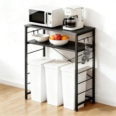 『大人気』 フック×4個 キッチンカウンター 耐荷重75KG (ブラック) 頑丈設計 ゴミ箱上収納 炊飯器 レンジラック 5段可動棚 キッチンラック 幅80×奥行40×高さ100cm ゴミ箱上ラック