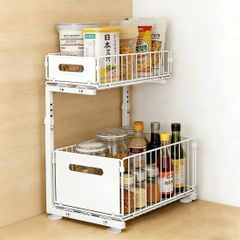 【新着商品】組立簡単 高さ調節可能 スライドラック キッチンした/シンクした/洗面台下/流し台下/コンロ下 大容量 スライド式 シンク下収納ラック キッチン下収納 2段 省スペース(L字型、ホワイト) 引き出し 収納 シンク下