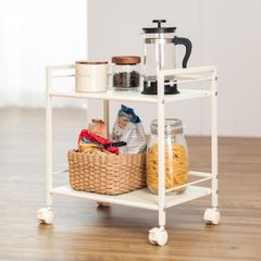【人気商品】キャスター付 カラーボックスサイズで使いやすく鉄製パンチングがお手入れ簡単 2段 アイボリー キッチンワゴン GC-P46IV キッチンラック 幅43×奥行29.5×高さ47cm ドウシシャ