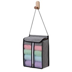 吊り下げ】 壁掛け 通気性の良い不織布製 活性炭の力でタオルを消臭保管 【タオルストッカー タオルホルダー フェイスタオル グレー 保管ケース ランドリー収納 タオル収納ケース 洗面所 洗面台 活性炭消臭 タオル入れ 透明窓付き アストロ 171-92