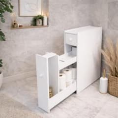 省スペース ペーパーペーパー収納 小物置き 組立簡単 隙間収納 コンパクト 扉付き 目隠し収納 安定感 スリム トイレットティッシュ収納 コーナーラック 幅15.5X奥行15.5X高さ80cm 細長い 洗面所 トイレラック 浴室 玄関 トイレ収納 キッチン バ