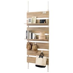 萩原(Hagihara) 突っ張り ラック つっぱり 棚 壁面収納 ウォールラック 【DIY・穴あけ・工事が不要】簡単取付 段差対応 木目調 幅80 スリム ナチュラル KTR-3148NW/