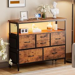 IKIFLY チェスト収納 箪笥 棚付き 寝室収納LEDライト付きリビング収納タンス 引き出し北欧 洋服タンス 布製 整理一人暮らし (ビンテージ, 幅100CM)
