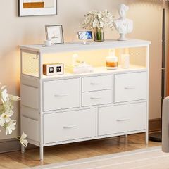 IKIFLY チェスト収納 箪笥 棚付き 寝室収納LEDライト付きリビング収納タンス 引き出し北欧 洋服タンス 布製 整理一人暮らし (ホワイト, 幅100CM)
