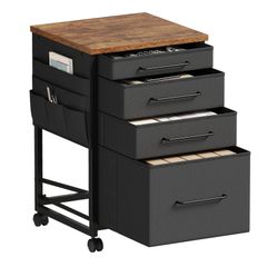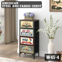 デスクワゴン キャビネット サイドチェスト オフィスワゴン 布製 袖机 サイドワゴン 4段 A4対応 大容量 キャスター付き デスク下収納 幅390*奥行400*高さ640mm ?子 ビンテージ+黒い引き出し/