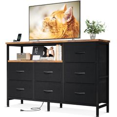 AODK タンス チェスト コンセント付き 幅132×奥行30×高さ90cm テレビ台 リビング 収納 大容量 洋服タンス 収納ケース 衣装ケース 布製引き出し 箪笥 おしゃれ 転倒防止 安定感 3段7杯 ブラック&ビンテージ