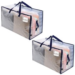 【数量限定】【大人気】高耐久 耐水 折りたたみ 2ペア持ち手付き ラベルポケット付き 3面ファスナー 収納ケース 布団袋 引越し 代替品 布団収納 引越し用ダンボール 衣類収納 103L大容量 押入れ収納 布団収納袋 (半透明 VENO 2枚セット)