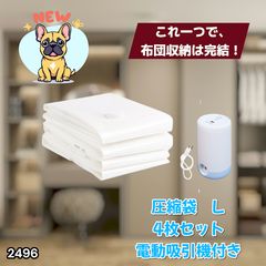 #2496 圧縮袋 Lサイズ 4枚セット 衣類 ふとん 電動ポンプ 吸引機 バルブ式 布団圧縮袋 ポンプ 電動 掃除機不要 特大 ※一部地域離島別途配送料有