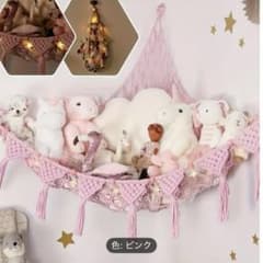 新品 ピンク ハンモック 収納 ぬいぐるみ おもちゃ お片付け 壁掛け