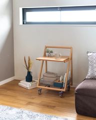 調節可能ワークアシストワゴン FWWZ 幅45cm 収納ワゴン サイドテーブル キャスター付き 頑丈設計 PVC フチ付き天板 可動棚 ホワイトスチール ホワイトオーク 送料無料 [8401]