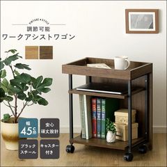 ヴィンテージ調 調節可能ワークアシストワゴン VWWZ 幅45cm 収納ワゴン サイドテーブル キャスター付き 頑丈設計 PVC フチ付き天板 可動棚 ブラックスチール ウォールナット シャビーオーク 送料無料 【全2色】[8402]