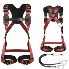 【新着商品】セット 新規格 フルハーネス安全帯 - 安全保護 ワンタッチ フルハーネス バックル 脱着簡単 ハーネス安全帯 ランヤード付き TRSMIMA] 2丁掛け 肩パッド 収納袋付き 墜落制止用器具 [TT 高所作業用 電気工事 落下防止