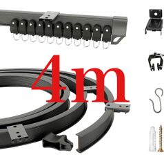 Mizukiori カーテンレール 曲がる 4m 出窓 シングルトラック 壁取り付け 車、寝室、間仕切り用 フレキシブルカーテンレール 黒 取り付け簡単 フック付き