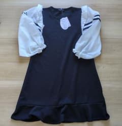 未使用品 組曲 ネイビー 七分袖 ワンピース フリル付き 160cm