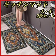 大人気 デザインマット 2枚セット 大小 キッチンマット 台所マット