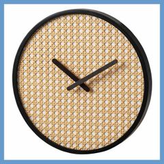 丸型壁掛け時計(ラタン調デザイン)「W30×D3×H30cm」(静音タイプ)No.201/ブラック