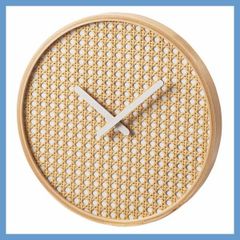 丸型壁掛け時計(ラタン調デザイン)「W30×D3×H30cm」(静音タイプ)No.201/ナチュラル
