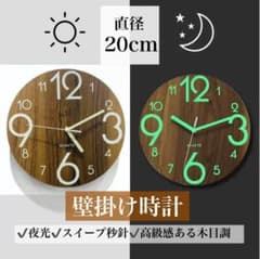 木製 静音 壁掛け時計 夜光 木目調 ローマ数字 20cm ウッド調