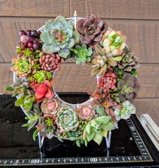 012203多肉植物のリース★特大・21cm★吊り輪っか付き★飾り台付き