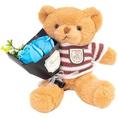 【新品】 ソープフラワー テディベア 花束 (ブラウンベア×ブルーバラ/日本製) フラワー装飾技能士が手掛ける逸品 (バラの花束) こどもの日 母の日 贈り物 お誕生日 ギフト プレゼント 0