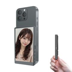 KEIYO スマホ用自撮りモニター Camee (キャミー) iPhone専用 外カメラモニター 磁石取付け magsafe対応 遠隔シャッターボタン付き 95g軽量 Instagram・BeReal・Tiktok撮影に最適 ミラーリング接続 EC限定ステッカ