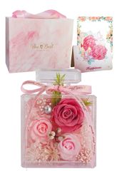 プリザーブドフラワー プレゼント ホワイトデー お返し 花 女性 誕生日 ブリザードフラワー 枯れない花 結婚祝い アレンジメント 3輪の薔薇 香水ボトル調 フラワーギフト 記念日 母の日 カード&手提げボックス付き ピンク系色バラri