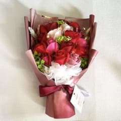 【新品未使用】造花 フレグランスソープフラワー ライト付き ピンク×赤