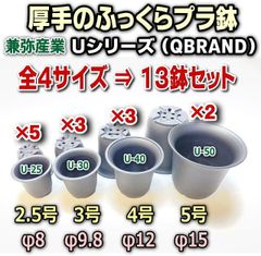 厚手のふっくらプラ鉢*カネヤ(兼弥産業)Uシリーズ(QBRAND)*全4サイズ:2.5号×5鉢*3号×3鉢*4号×3鉢*5号×2鉢の合計13鉢*多肉植物・塊根植物コーデックス・アガベ・サボテン・ハオルチア・アデニウム・パキポディウム・実生@フラワーショップ江口