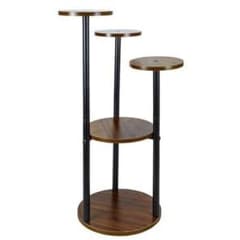 RAKU プランターラック フラワースタンド 3段 ストパー付きキャスター 幅83.5×奥行き38.5×高さ165.5cm 植木鉢ラック 吊り鉢 吊り下げ ウォールナット 園芸ラック 花置き棚 アイアン ホワイト ブラック (黒)★m