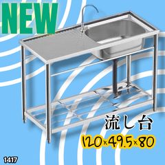 #1417 ステンレス製 厚みプラス 流し台 サイズ幅120×奥行き49.5×高さ80cm 深型シンク 蛇口付き 丈夫で長持ち 豊富な付属品 便利なタオル掛け S120 ※一部地域離島別途配送料有