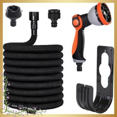 JIANLEI 伸びるホース 黒 散水ホース PVCコネクタ 3倍伸びる 5mから15mまで 洗車 水やり 庭 ベランダ 園芸 花壇 大掃除用 0
