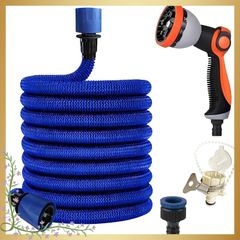 伸縮ホース 3倍伸縮 7種散水 伸びる 水撒き 軽量 青色 ロング ガーデニング