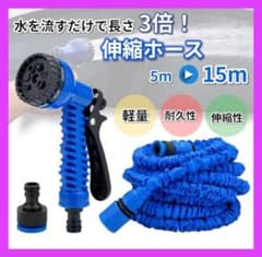 堅塁金物 伸びるホース 散水ホース3倍伸びる 洗車 水やり 庭 ベランダ 園芸 花壇 大掃除用 (5Mから15Mまで, ブルー) 0