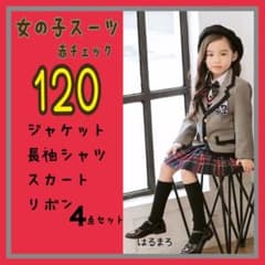 《セール》 女の子 スーツ 赤 チェックスカート120 フォーマル 4点セット