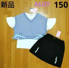 【新品】アルジー裾リボンベスト&フレアー袖T+フリルスリット切替スカート150