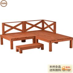 ウッドデッキ 天然木 キット 7点セット 0.5坪 ウッドパネル 家具ガーデンファニチャーバルコニー ベランダ 踏み台付 北欧 キットウッド 新生活【レッドブラウ 【レッド】