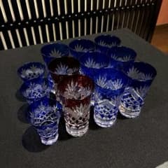 色被切子クリスタルタンブラー 石塚硝子 「アデリア」12個セット(未使用品)