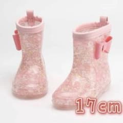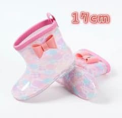 レインブーツ 【17cm】リボン かわいい 子供 長靴 キッズ ピンク