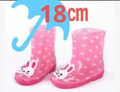 18cm レインブーツ レインシューズ 長靴 ピンク うさぎ ドット シューズ