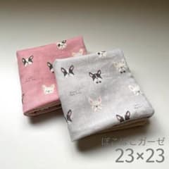 2色のフレンチブルドッグさん ダブルガーゼ×ぽこぽこガーゼハンカチ 23×23