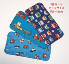 120 車 ハンカチ ハーフ ハンドメイド Wガーゼ 幼稚園 入園 入学