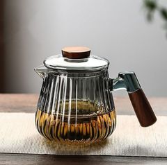 400ml 耐熱ガラス ティーポット 茶こし付き ガラス製ポット 手作り ステンレス鋼持ち手 ジャンピング 紅茶ポット フルーツティー 花茶 工芸茶 ハーフティー に ガラス急須 健康茶器 直火可