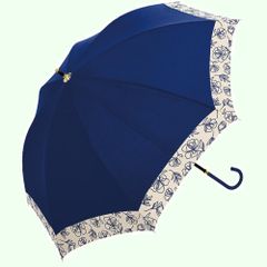 内側特殊コーティング UPF50+ 一級遮光 遮熱 UVカット100 軽量 丈夫 55cm 耐風 グラスファイバー親骨 レディース 手開き 晴雨兼用 かわいい 縁 日傘 花柄 & 長傘 フリルカット 無地 ベーシックスタンダード 紺